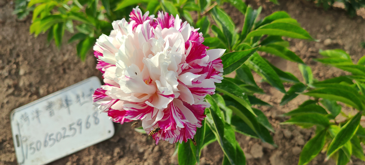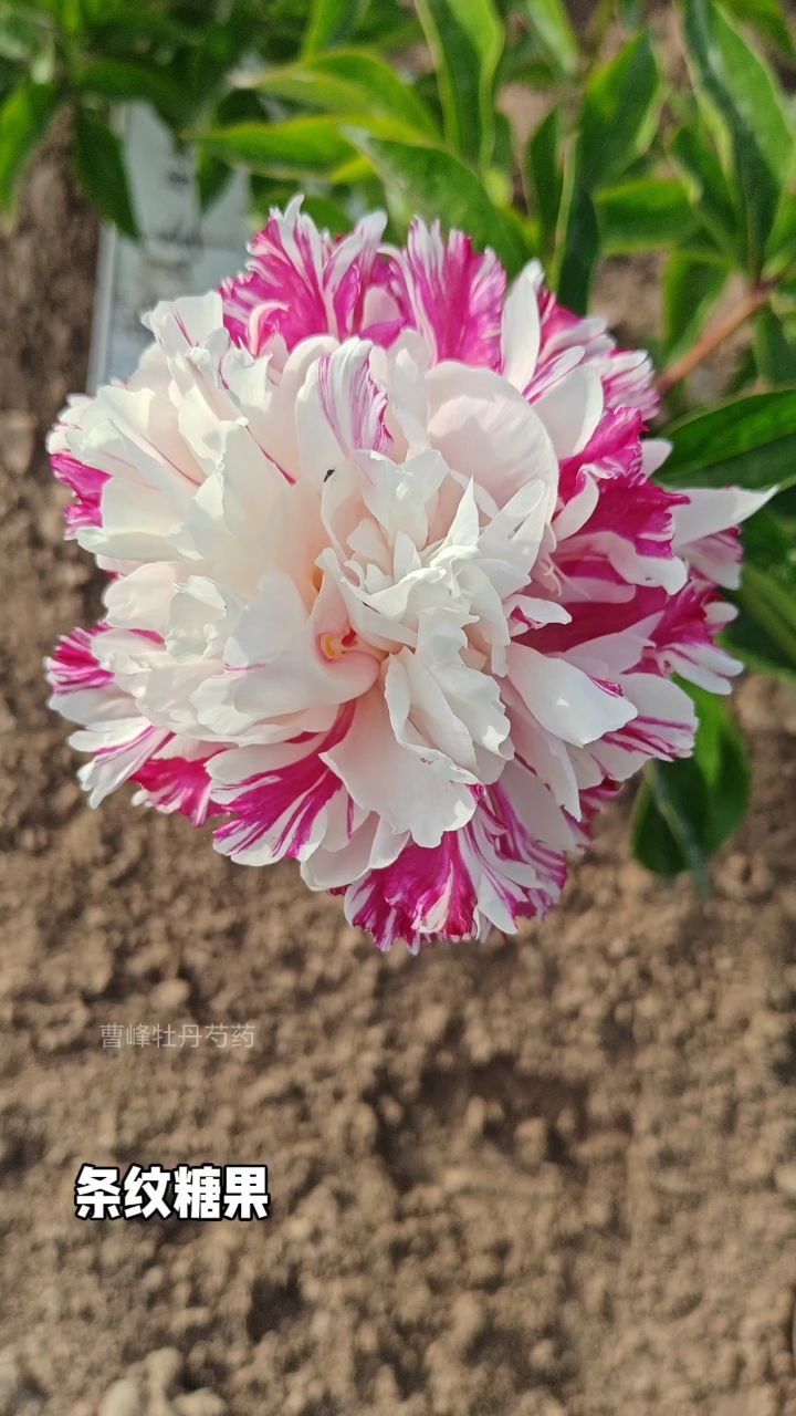 芍药糖果条纹花开实拍(拍摄于菏泽曹峰牡丹芍药苗圃)